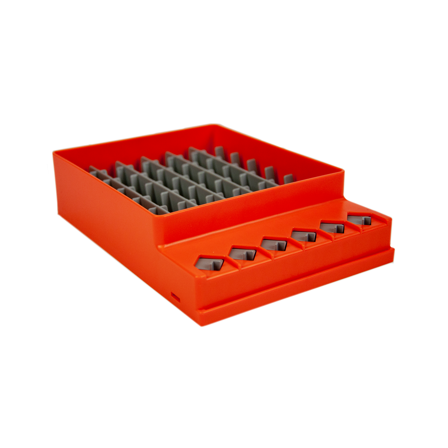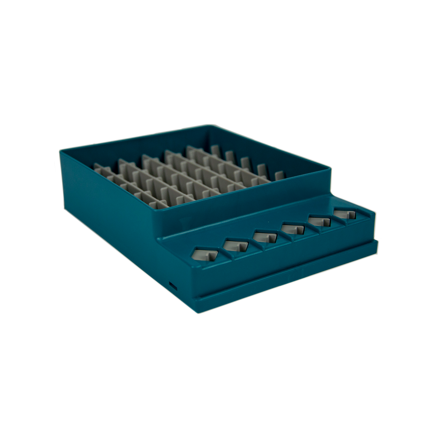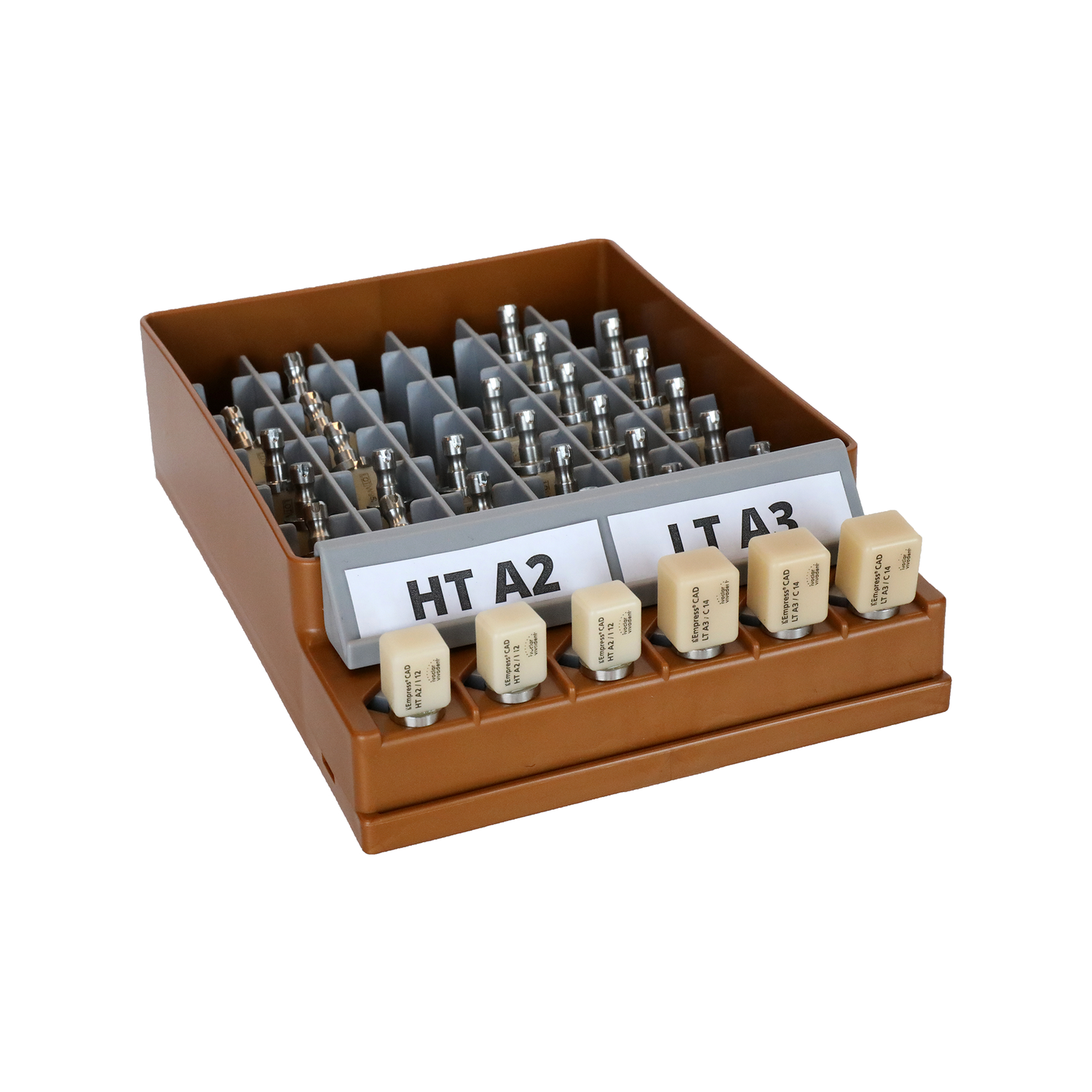 When it comes to storing milling blocks for CAD/CAM Milling Machines, they can often end up scattered in drawers. This makes it impossible to take inventory at a glance or find what you need when you need it. Our Block Organizer™ is here to help! With their ability to fit inside most drawers, these organizers are designed to help organize the chaos by providing a well labeled, storage system within your existing cabinetry.
