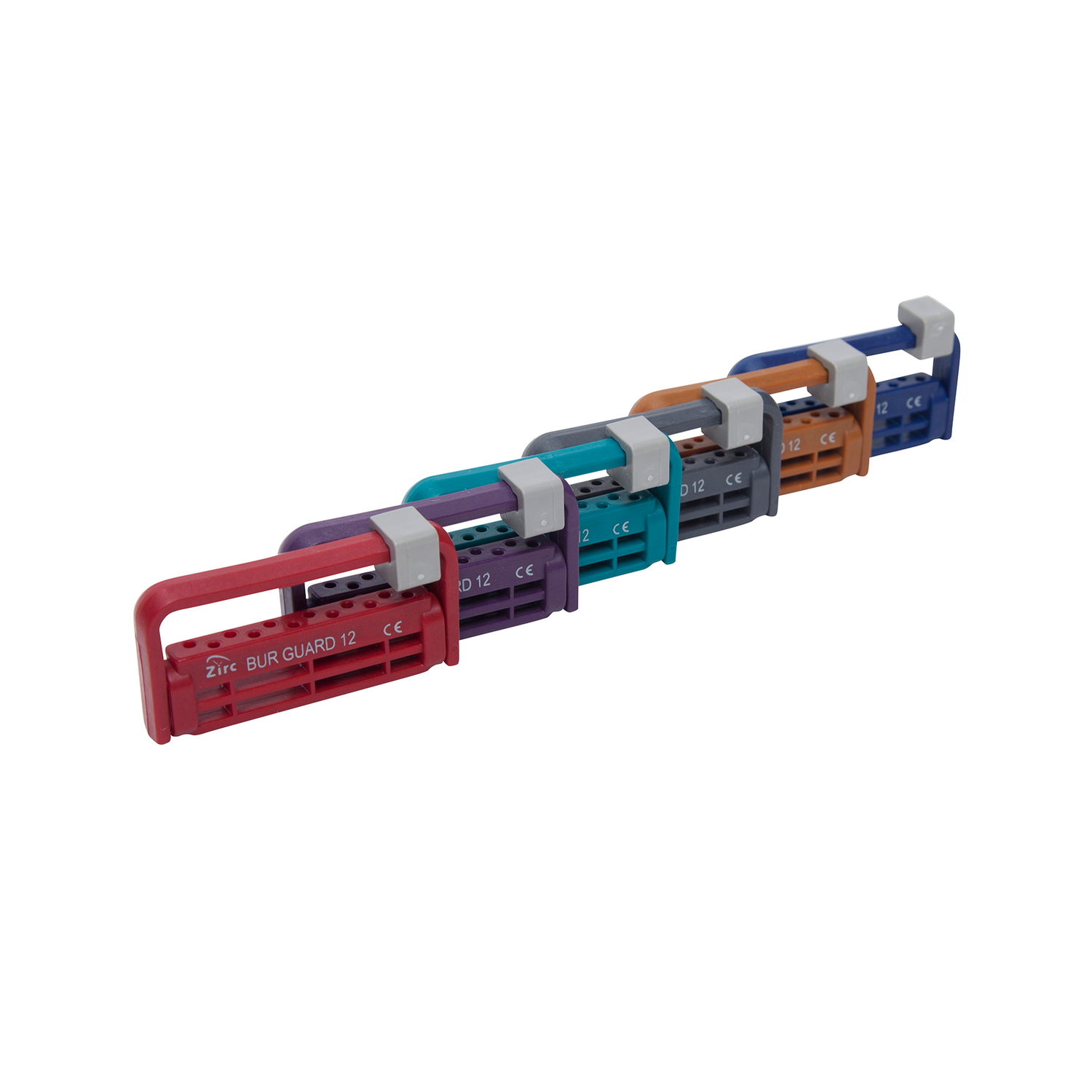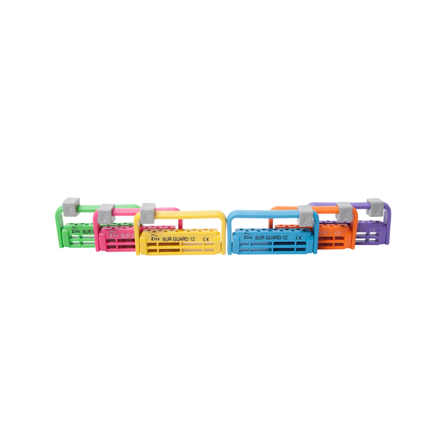 With room for twelve burs and the ability to store burs of different lengths, our Steri-Bur Guard offers a lot. It features a ratcheting arm that has three different positions to lock in the burs and keep them safe during reprocessing. The design is also compatible to be used at chairside to provide quick and easy access during dental procedures.