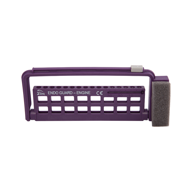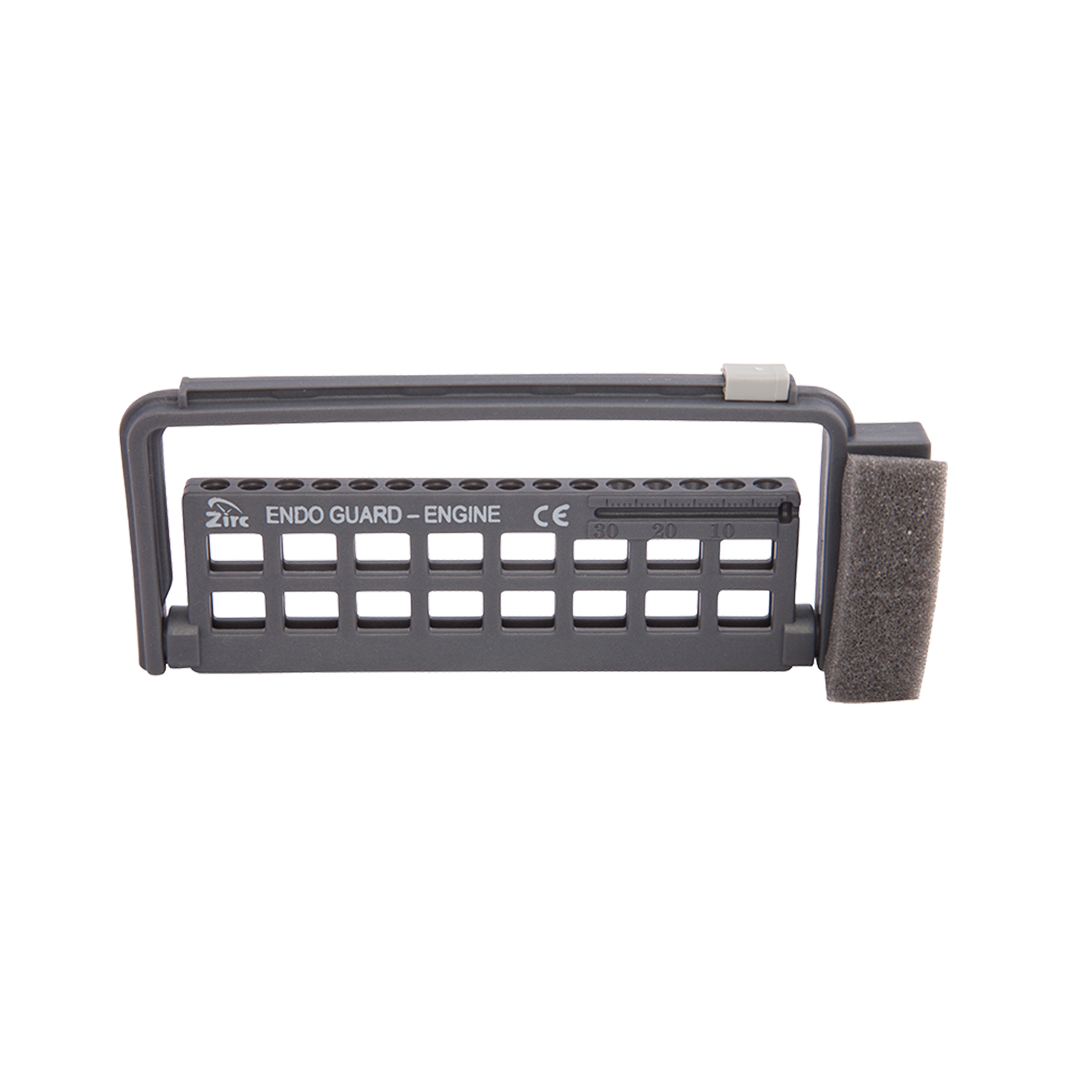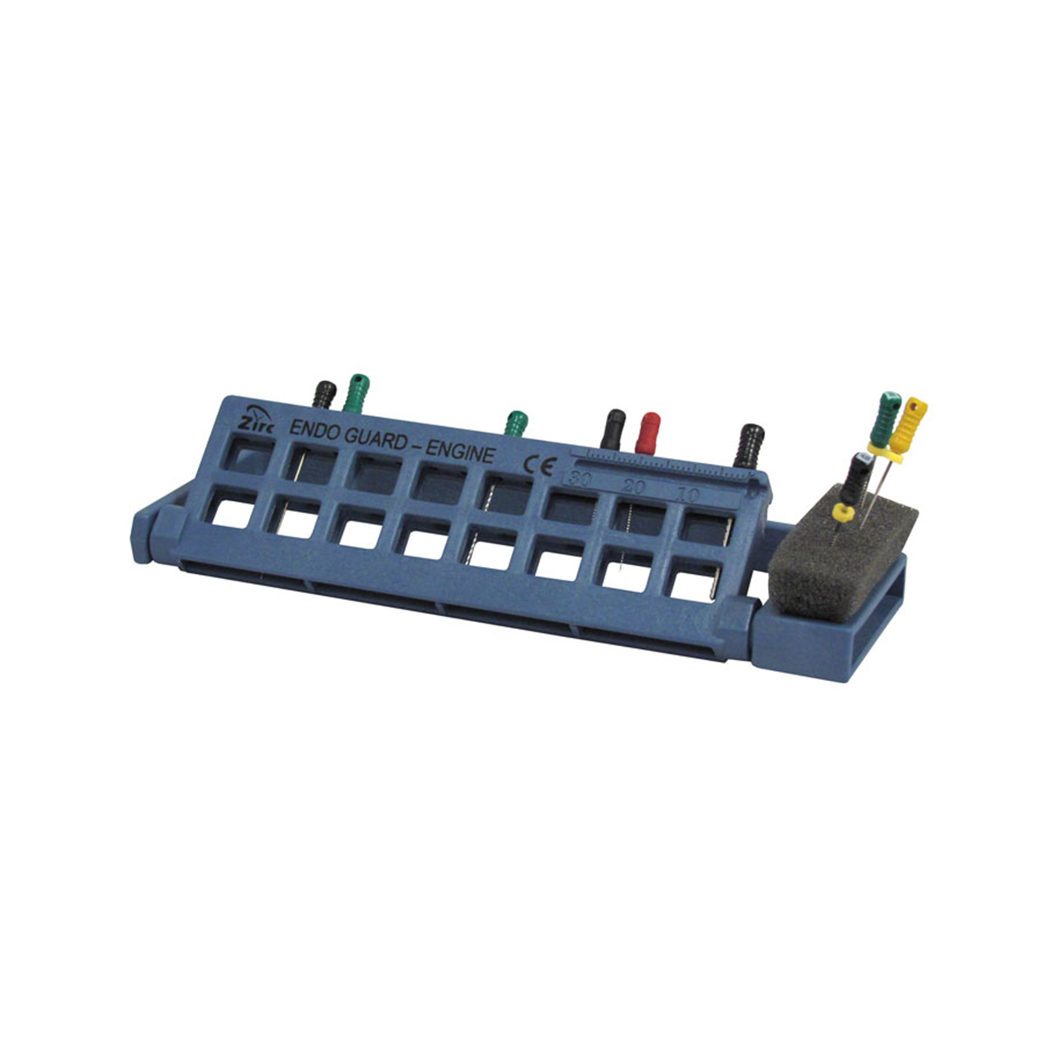 Our Endo Guard Hand is the perfect place to store almost any length hand file, rotary, or reamer. It will keep your files safe from getting lost or damaged during reprocessing with the help of the ratcheting arm. That arm can be set in three different positions to be able to lock in the files. The Endo Guard Hand also provides great assistance during root canals by organizing your tools so they're easy to reach.