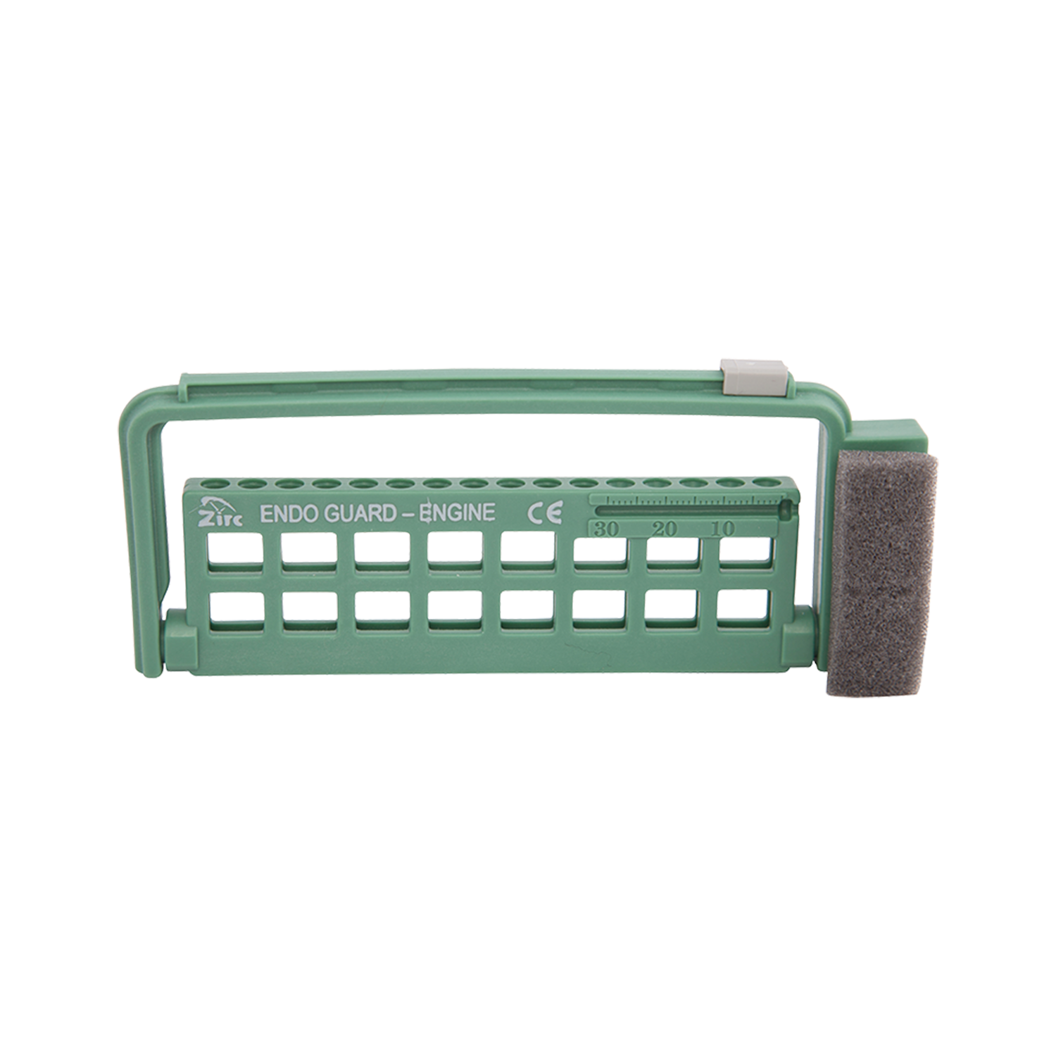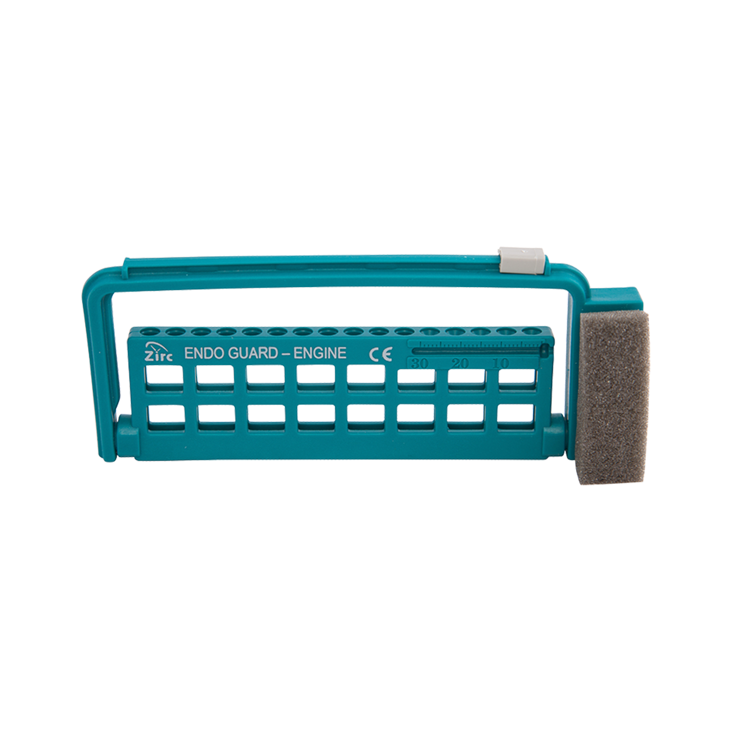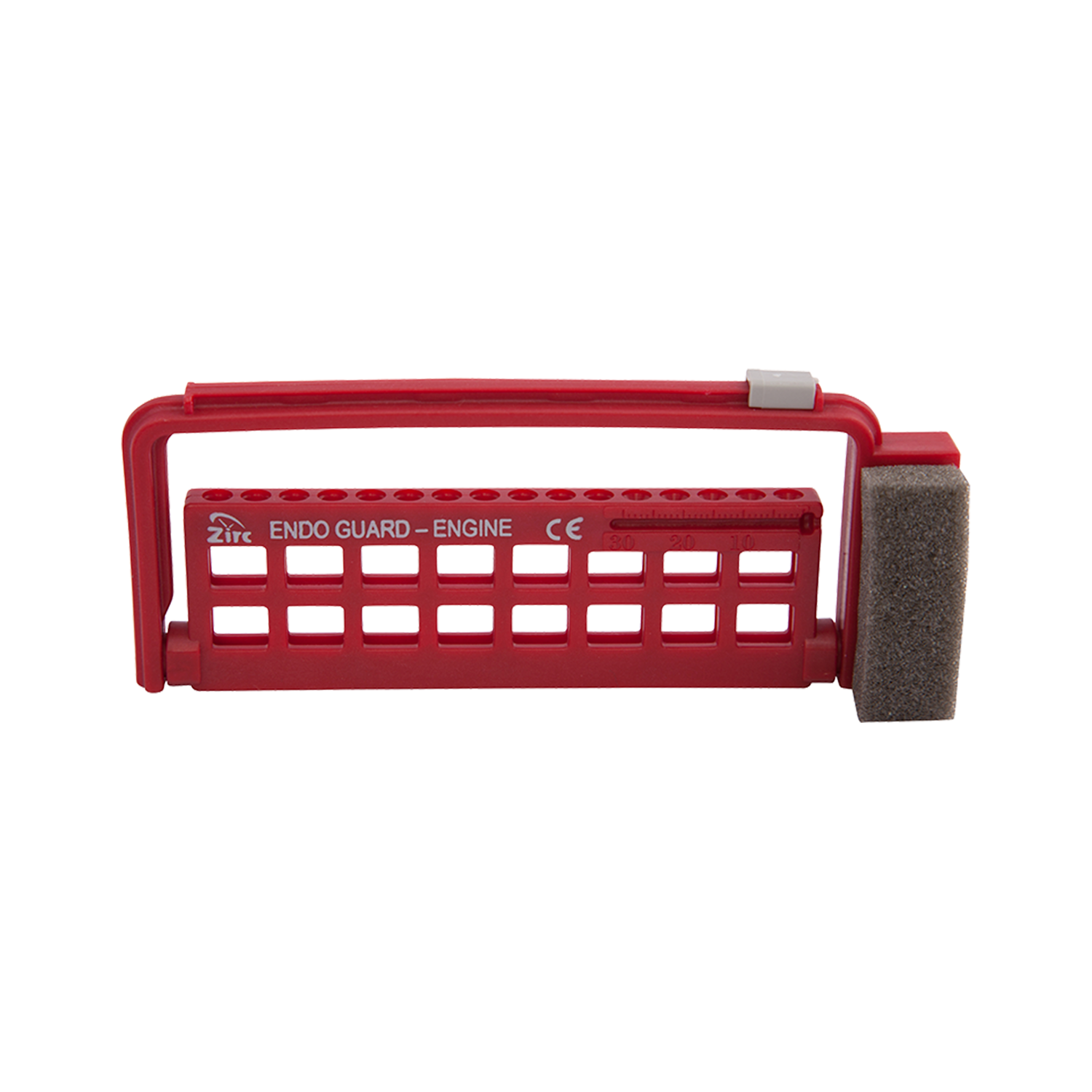 Our Endo Guard Hand is the perfect place to store almost any length hand file, rotary, or reamer. It will keep your files safe from getting lost or damaged during reprocessing with the help of the ratcheting arm. That arm can be set in three different positions to be able to lock in the files. The Endo Guard Hand also provides great assistance during root canals by organizing your tools so they're easy to reach.